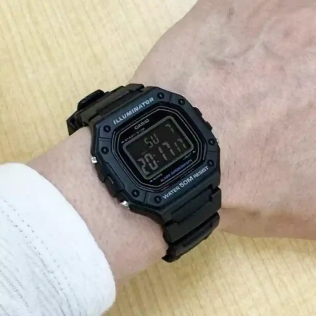 Modelo: W-218H-1B Colección: Sport Tipo: Digital Género: Hombre Color caja: Negro Color esfera: Negro Color pantalla: Negro / negativa Color pulsera: Negro Material caja: Resina Material pulsera: Resina Material vidrio: Resina Cierre: Hebilla Duración pila: 7 años aproximadamente Resistencia al agua: 5 BAR. Funciones: Luz de fondo LED, cronómetro, alarma diaria, señal horaria, calendario automático, formato 12/24 horas, funciones clásicas de reloj (hora, minuto, segundo, am / pm, año, mes, fecha, día). Medidas: 44.4 x 43.2 x 10.8mm Peso: 37 gramos aprox.