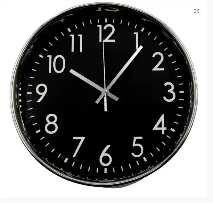Reloj de Pared Decorativo 12 Pulgadas Borde Blanco Reloj de Pared decorativo de 30 cm de diametro. Borde negro / Manecillas y números blancos. Material: Plástico. Ideal para la sala de estar, comedor, cocina, cafetería, restaurante, tiendas etc. No incluye pilas (1 x AA) .