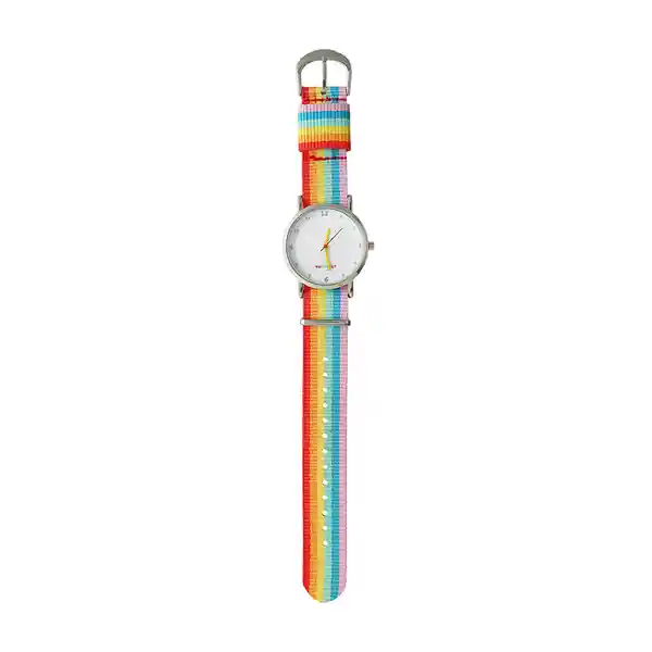 Adquiere Este Lindo Reloj Multicolor. Diseño Colorido Tipo Arcoíris. Caja y Bisel Metálico Extensible Tipo Correa en Material Textil Carátula en Color Blanco Con Manecillas e Indicadores a Contraste. Tamaño 24.5 cm. un Reloj Que se Adapta a Todo Tipo de Estilos.