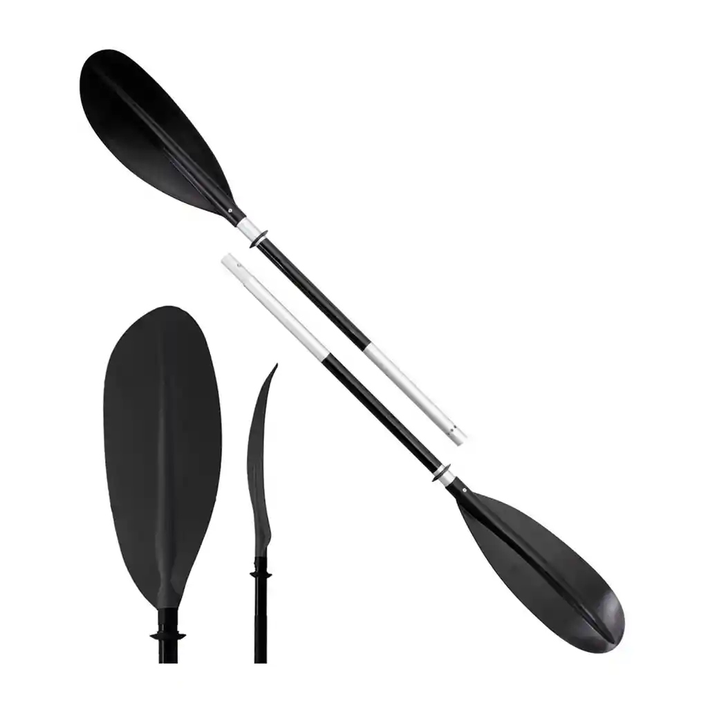 REMO KAYAK DOBLE PALA Modelo remo doble paleta desarmable Remo Kayak Doble paleta Remo ensamblable en dos tramos Ensamble en tres posiciones de distintos ángulos Pala de 3 Posiciones (1 simétrica y 2 asimétricas con 35 grados de ángulo entre hojas) Matrial paleta polipropileno, mango aluminio Con corta gotera Peso 865 grs Largo total armado 222 cms Largo cada tramo del remo 115 cms Largo y ancho aprox de cada paleta 41 por 18 cms Paleta con forma típica para kayak Terminación remachado Color blanco y negro Fabricacion en China