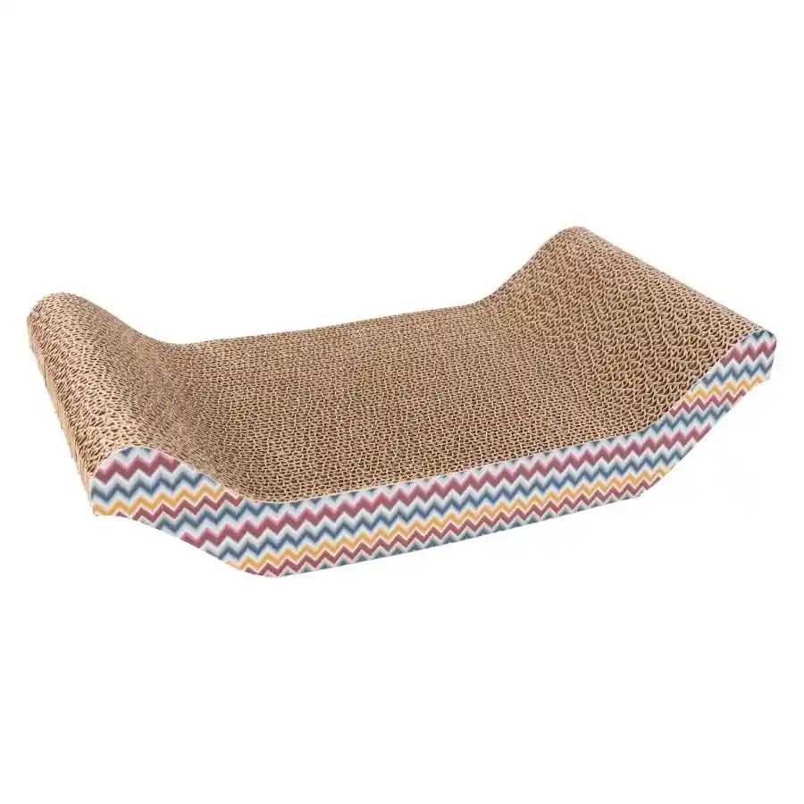 Rascador de cartón corrugado curvo y reversible, liviano y fácil de mover. Ideal para afilar uñas, estirarse y echar siestitas, protegiendo sillones y alfombras en casa o depa.