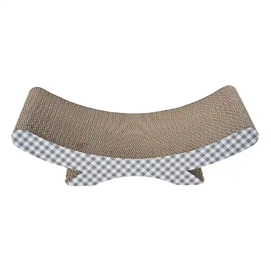 Rascador para gatos Leeby Remy Rocker con catnip, de cartón corrugado reciclable y reversible. Diseño curvo tipo mecedora para rascar, estirarse y dormir sin dañar tus muebles.