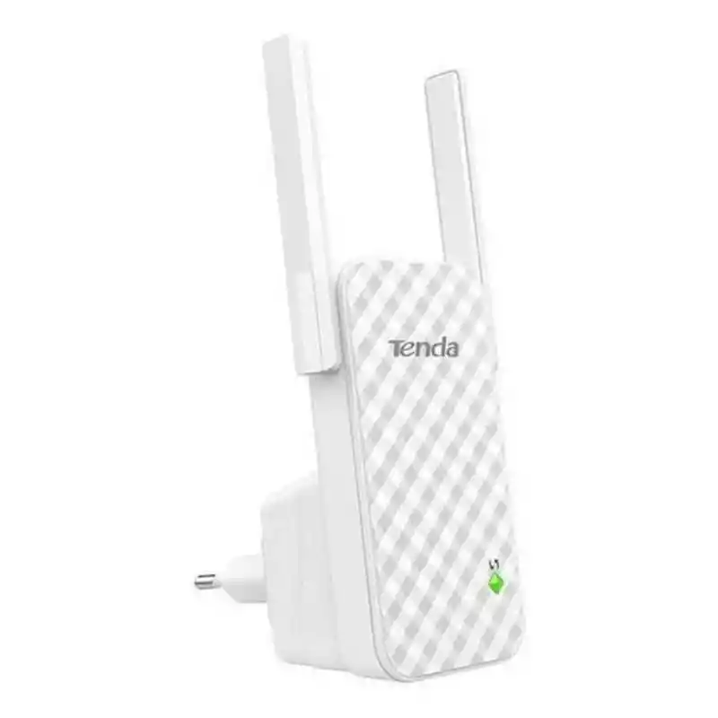 Repetidor WiFi A9 N300 El dispositivo A9 es un extensor de alcance universal N300 inalámbrico diseñado especialmente para ampliar la cobertura WiFi existente y mejorar la intensidad de la señal. Gracias a su botón de extensión, LED de señal inteligente, diseño de montaje en pared y compatibilidad universal, permite al usuario mejorar la conexión inalámbrica. El A9 es la opción ideal para llevar la señal WiFi a todos los rincones de la casa y optimizar la red. Marca: Tenda Modelo: A9 Velocidad: 802.11b: 11 Mbps 802.11g: 54 Mbps 802.11n: 300 Mbps Estándar y protocolo: IEEE 802.11b, IEEE 802.11g, IEEE 802.11n Modulación: 802.11b: DSSS / BPSK / QPSK / CCK 802.11g: OFDM / DSSS / BPSK / QPSK / CCK 802.11n: OFDM / DSSS / BPSK / QPSK / CCK Frecuencia: 2,412 GHz ~ 2,484 GHz Potencia: 16 dBm Sensibilidad de recepción: 11b: -95 dBm 11g: -76 dBm 11n: -73 dBm Antena: 2 x antenas externas no removibles de 3 dBi Versión del estándar: RFC768 UDP RFC791 IP RFC792 ICMP RFC793 TCP Ancho de banda de canal: 20/40 MHz (predeterminado) Modo de funcionamiento: Modo de repetidor (cliente + punto de acceso) Seguridad inalámbrica: Modo de cifrado: WPA-PSK/WPA2-PSK combinados Algoritmo de WPA: TKIP Servidor DHCP: Admitido Herramientas del sistema: Actualización Restablecimiento de los valores predeterminados de fábrica Contraseña de inicio de sesión Registro del sistema Reinicio Temperatura: Funcionamiento: 0 ºC ~ 40 ºC Almacenamiento: -40 ℃ ~ 70 ℃ Humedad: Funcionamiento: 10 % ~ 90 %, sin condensación Almacenamiento: 5 % ~ 90 %, sin condensación Dimensiones: 111 x 56 x 47,7 mm