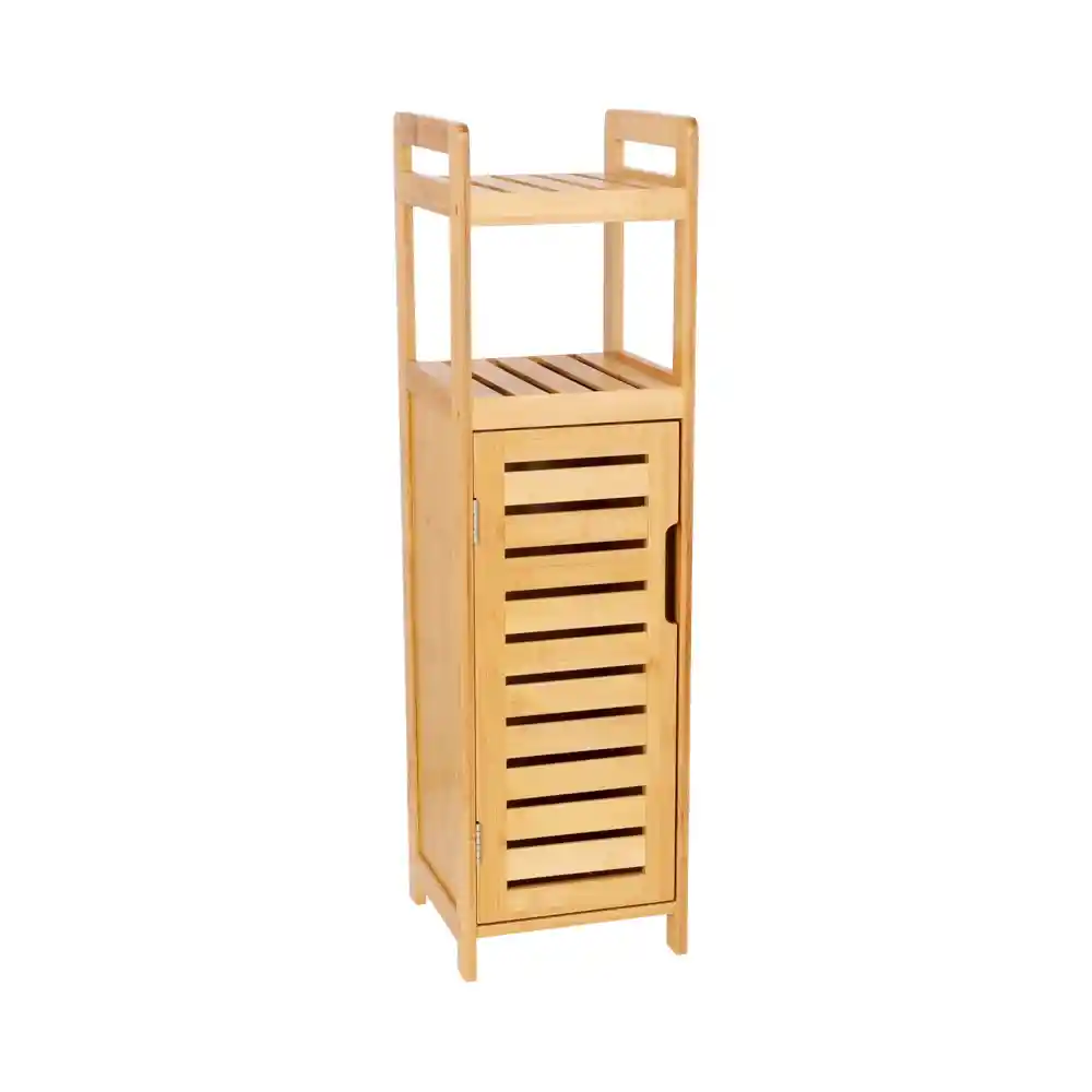 Con Puerta Hecha de Madera de Bambú. Este Producto Requiere Armado (Incluye Instrucciones). Soporta Hasta 10 Kilos Tiene un Tamaño de 23 x 23 x 82 cm.