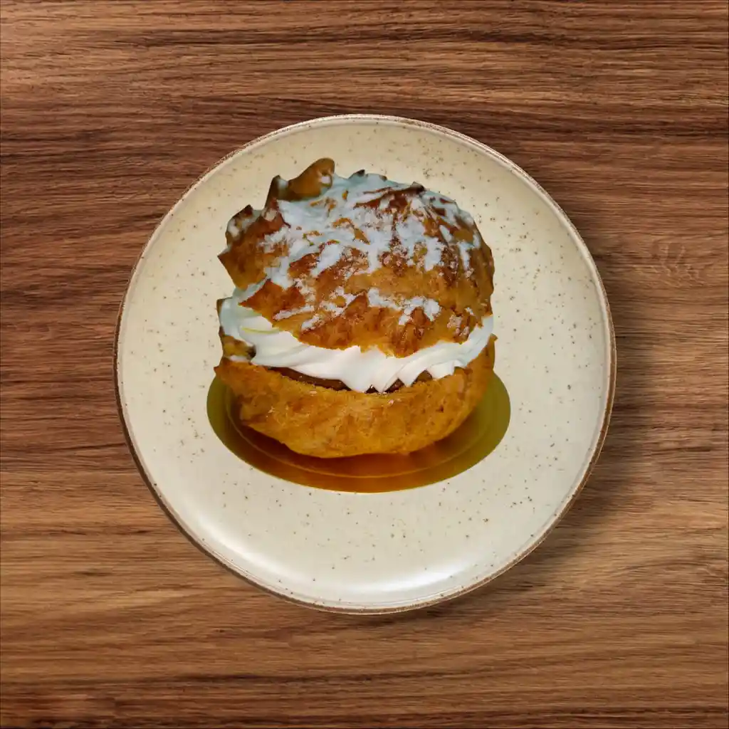 Masa choux, relleno con una suave crema de chantilly y manjar
