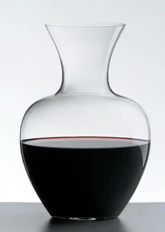 Decantador para vinos Riedel. La mejor manera de airear tu vino es con un decantador y lo ideal es que lo hagas unos 30 minutos antes de servir tu vino, para que no pierda su temperatura. El decantador Apple de Riedel por su forma y tamaño, también lo puedes usar como jarro de agua. Con limones, hierbas o frutas, tendrás un precioso jarro. Perfecto para servir la más deliciosa sangría. Año de diseño: 2014Modelo: Apple Volumen: 1,5 ltAltura: 19,5 cmCantidad por caja: 1Tipo de fabricación: Machine productionMaterial: CristalOrigen: Austria Lavar a mano con agua Caliente y dejar secar dado vuelta.