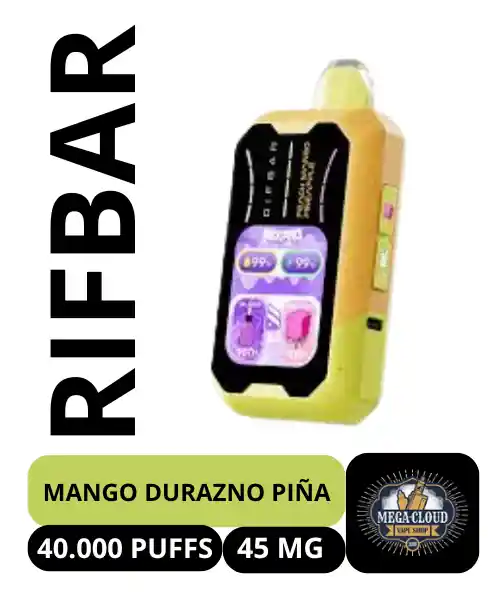 Vape desechable Rifbar MixPro 40K Puffs sabor Peach Mango Pineapple con 45mg de nicotina. Experimenta una mezcla tropical intensa con el equilibrio perfecto entre el dulzor jugoso del durazno, la frescura exótica del mango y el toque ácido y refrescante de la piña. Este vape de sabor frutal premium ofrece una explosión de sabor en cada calada, ideal para quienes buscan una experiencia vibrante y tropical. Con hasta 40,000 puffs, este vape desechable de alta duración está diseñado para brindar una gran producción de vapor, un golpe de garganta fuerte y una sensación suave gracias a su concentración de 45mg de nicotina. Incluye tecnología para ajustar el nivel de frescura (ice), la intensidad de sabor y el golpe de nicotina, adaptándose a tu gusto. Ideal para usuarios que buscan: Sabores frutales tropicales intensos Vape de alto rendimiento Dispositivo desechable elegante y moderno Control de frescura y potencia personalizada
