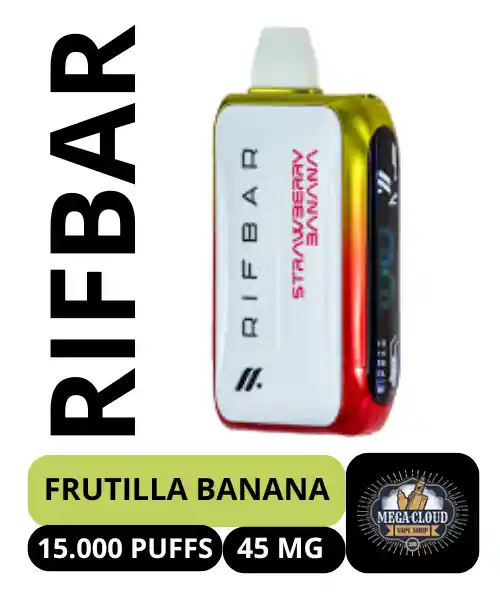Vape desechable Rifbar Turbo X Strawberry Banana con 45mg de nicotina y hasta 15,000 caladas. Disfruta de un clásico irresistible: fresa dulce y plátano cremoso, perfectamente equilibrados para ofrecer una experiencia suave, frutal y ligeramente láctea. Este sabor ofrece una mezcla nostálgica, ideal para quienes buscan un vape frutal, dulce y cremoso en cada puff. Con 45mg de nicotina, el dispositivo proporciona un golpe de garganta firme, mientras que su diseño compacto y elegante garantiza comodidad y alto rendimiento. Con una duración de hasta 15K puffs, es ideal para vapeadores que buscan sabor, potencia y cero mantenimiento.