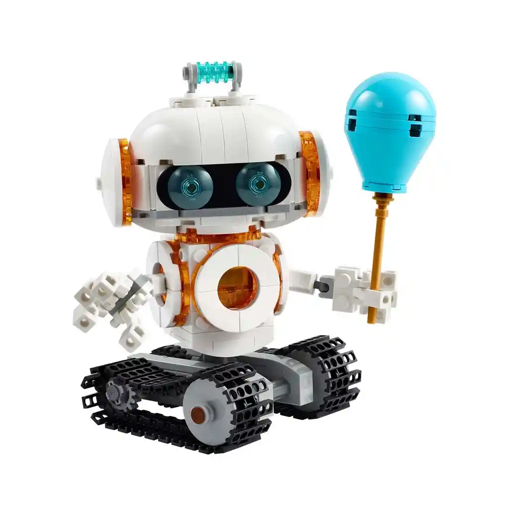 Juguete niño. Los niños y las niñas a partir de 8 años imaginan historias entre las estrellas con el juego del mundo de la ciencia LEGO® Creator 3en1 Robot Espacial (31164). Este robot de juguete se mueve sobre orugas y cuenta con mochila propulsora, cuerpo y cabeza giratorios, brazos y dedos articulados, un globo y un ladrillo con luz que le ilumina el pecho. Los fans de LEGO construyen y reconstruyen 3 juegos de tema espacial con los mismos ladrillos: un robot de juguete sobre orugas móviles; un perro espacial articulado con un hueso y un disco volador; o un cohete espacial. Los 3 modelos para jugar y exponer se iluminan al pulsar un ladrillo con luz (pilas incluidas). Los sets LEGO Creator 3en1, con 3 modelos reconstruibles en cada caja, son fantásticos regalos para niños. Estos sets 3en1 de juguetes transformables fomentan el juego imaginativo y se inspiran en algunas de sus mayores pasiones, como los vehículos, los animales y las casas. Nota: Los modelos no se pueden construir simultáneamente. 3 opciones de construcción de juguetes de tema espacial en 1 caja: El juego LEGO® Creator 3en1 Robot Espacial para niños y niñas a partir de 8 años les permite construir y reconstruir 3 juguetes diferentes con los mismos ladrillos. Múltiples posibilidades de juego: Los peques podrán representar aventuras intergalácticas con el Robot Espacial de juguete, una figura de un perro espacial y un cohete espacial (los 3 modelos no se pueden construir simultáneamente). Figuras articuladas relacionadascon el espacio: El robot de juguete cuenta con brazos y dedos articulados, y con cabeza y cuerpo giratorios; el perro espacial tiene cabeza giratoria y 4 patas articuladas. Modelos iluminados: Los 3 modelos LEGO® del espacio se iluminan cuando losniños pulsan un ladrillo con luz especial (pilas incluidas). Robot para regalar: Además de proporcionar una divertida experiencia de construcción y juego a los fans del espacio, este juguete 3en1 es ideal como regalo de cumpleaños para disfrutar con el juego imaginativo durante horas. Más diversión 3en1: Amplía las aventuras de tu peque con otros sets de la gama LEGO® Creator 3en1 (a la venta por separado). Juguetes LEGO® Creator: Cada set 3en1 ofrece a los niños la oportunidad de construir 3 modelos diferentes inspirados en algunas de sus mayores pasiones, como los animales, los vehículos o las casas. Medidas: El robot LEGO® construible de este juego de tema espacial, compuesto por 281 piezas, mide aproximadamente 13 cm de altura.
