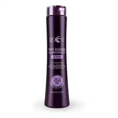 Rocco Post Alisado Acondicionador Actiliss – Acondicionador diseñado para complementar el cuidado del cabello alisado. Hidrata profundamente, facilita el desenredo y ayuda a mantener el efecto liso, reduciendo el frizz y aportando suavidad y brillo. Su fórmula libre de sal y sulfatos protege la fibra capilar y prolonga los resultados del alisado. Ideal para cabellos alisados o tratados químicamente. Contenido: 400 ml. Uso externo.