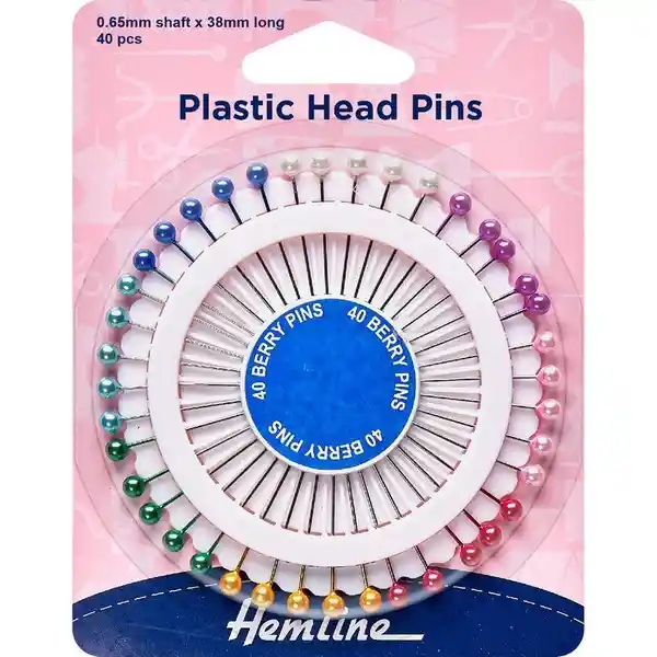 Alfileres de acero niquelado con coloridas cabezas decorativas perladas Más largos para costura general y uso artesanal Presentación en tradicional rueda Tamaño: 38 mm, 40 unidades