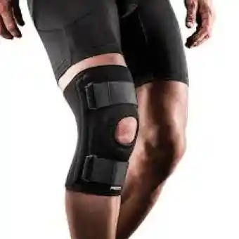 Rodillera con barras laterales, agujero, correa superior e inferior para adultos.