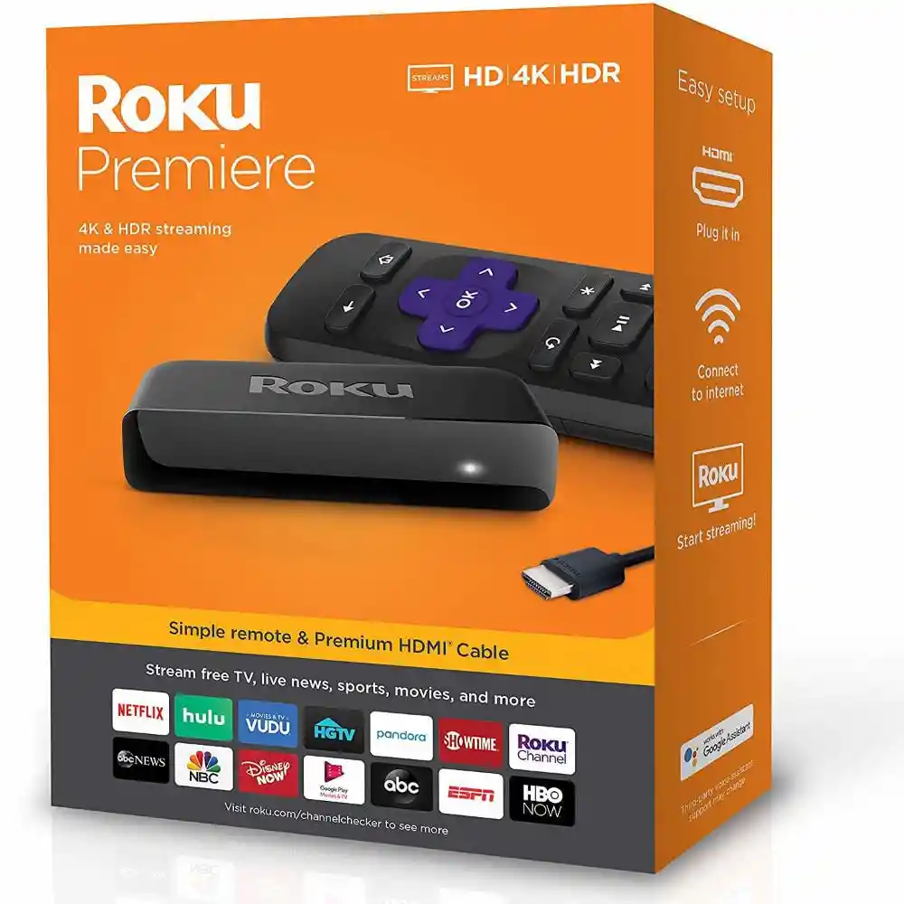 La Transmisión en 4K y Hdr es Más Fácil Imágenes Increíbles a un Precio Increíble. Roku Premiere es la Forma Sencilla de Comenzar a Transmitir en Hd 4K y Hdr. Encuentre y Disfrute Fácilmente Películas en Imágenes Brillantes de 4K Con el Canal 4K Spotlight. Simplemente Conéctelo a su Televisor Con el Cable Hdmi de Alta Velocidad Premium Incluido y Conéctese a Internet. Televisores Hd: Hasta 1080P (1920 x 1080) Con Escalado Desde 720P Televisores 4K Uhd: Hasta 2160P a 60 Fps (3840 x 2160) Con Escalado Desde 720P y 1080P. El Televisor Debe Tener Una Entrada Hdmi Que Admite Hdcp 2.2. Televisores 4K Uhd Hdr: Compatible Con Hdr10. El Televisor Debe Tener Una Entrada Hdmi Que Admite Hdcp 2.2.