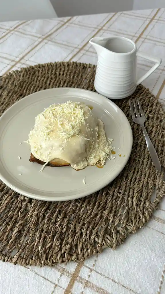 Rollo de masa dulce con anís, relleno de queso blanco semiduro y chancaca. Topping: icing de queso crema y queso blanco semiduro.