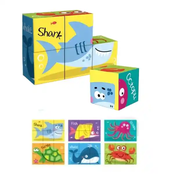 ¡Descubre el misterioso mundo del océano con tu hijo con los Rompecabezas del Océano 6 en 1! Este divertido y educativo juego es ideal para niños interesados en la vida marina y que disfrutan del mundo de los tiburones, las ballenas y otros animales marinos. Las coloridas y alegres ilustraciones captan la atención de los niños al instante, a la vez que desarrollan la motricidad fina, la concentración y el pensamiento lógico. El juego contiene 6 cubos que permiten armar 6 imágenes diferentes de animales marinos. Al girar los cubos y colocarlos en el lado correcto, los niños pueden armar un tiburón, una ballena, una estrella de mar o un camarón. Esta actividad ayuda a los niños a desarrollar sus habilidades de resolución de problemas de forma lúdica, a la vez que les ofrece una experiencia emocionante. El rompecabezas es compacto y fácil de transportar, ideal para jugar en casa, viajar o para largas esperas. Su diseño resistente garantiza su durabilidad, por lo que el juguete se mantendrá en excelentes condiciones durante mucho tiempo. Se recomienda para niños mayores de 3 años y es un regalo ideal para cualquier niño amante de las aventuras marinas.