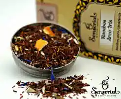 Rooibos, coco, cáscaras de naranja, frambuesa, hojas de mora, pétalos de aciano, sabor id natural de coco. Esta exquisita mezcla es de color rojizo transparente, cálida y de suave dulzor. Su nombre original Roibush significa «arbusto rojo». Excelente para todo el día, equilibra el sistema nervioso, relaja el sistema digestivo, ideal para el embarazo, los niños, hipertensos y tercera edad, es decir para toda persona , a cualquier edad. Se aconseja su consumo para aliviar alergias, bajar el stress y para dormir mejor, es un antioxidante por la presencia de flavonoides , quercitina (como en la cebolla) y superóxido dismutasa. Aporta minerales como Calcio y Flúor. Es muy saludable y se puede consumir en frío o caliente.