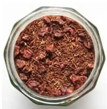 Té rojo de Sudáfrica, con pedacitos y aroma de frutilla y vainilla