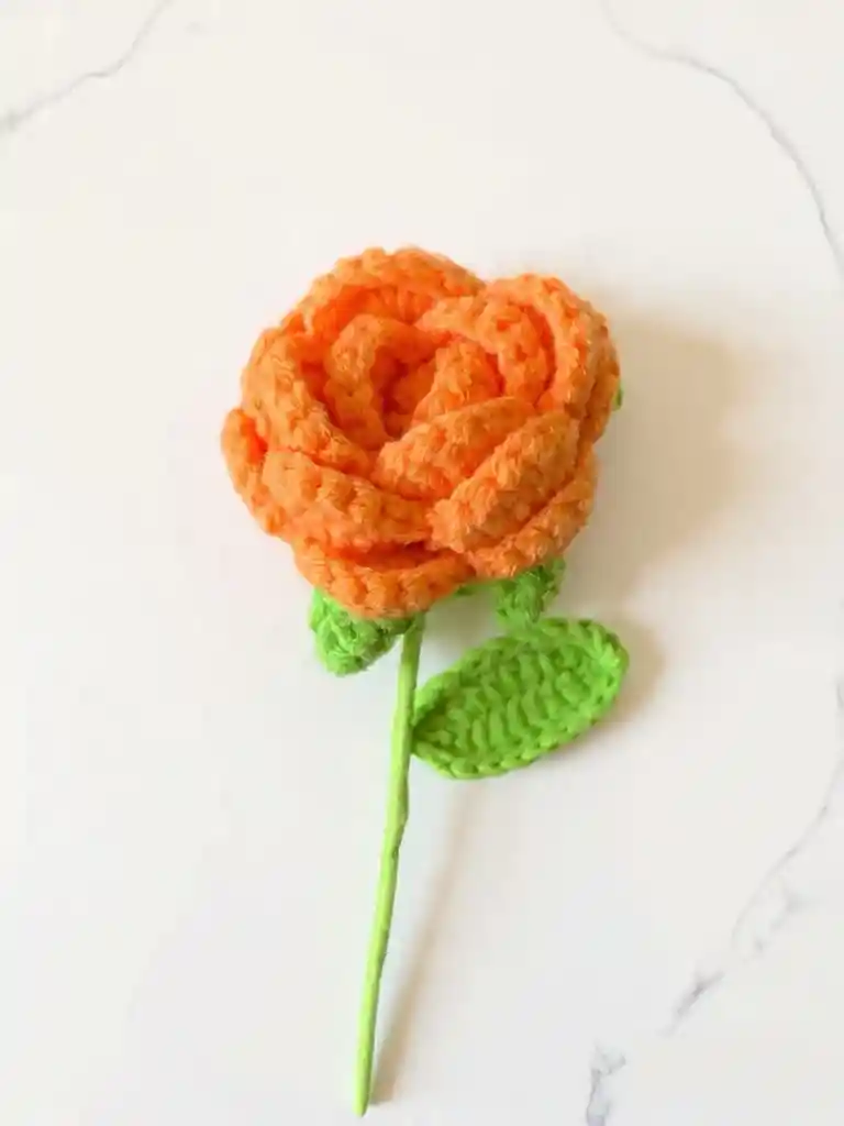 Rosa de lana naranja de 40-30 cms tejida a mano.
