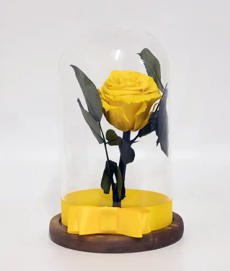 Rosa preservada en cúpula de vidrio. Perfecta para regalar en ocasiones especiales o para decorar tu espacio con un toque de sofisticación y romanticismo La rosa esta sometida a un proceso de conservación que permite mantener su belleza y naturalidad intactas por un largo tiempo. No requiere riego, se sugiere evitar lugares húmedos y exposición directa al sol para prolongar su durabilidad