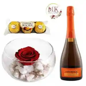 Rosa Preservada, Bombones 37.5grs y Espumante 750cc