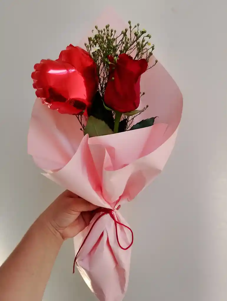 Incluye : 1 rosa roja + mini globo + follaje de estación + papelería