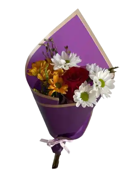 Hermoso ramo de rosa y margaritas mix, con toques de verde. Envueltas en fino Papel empavonado con cinta Satin. Regala Detalles que no se olvidan!!!