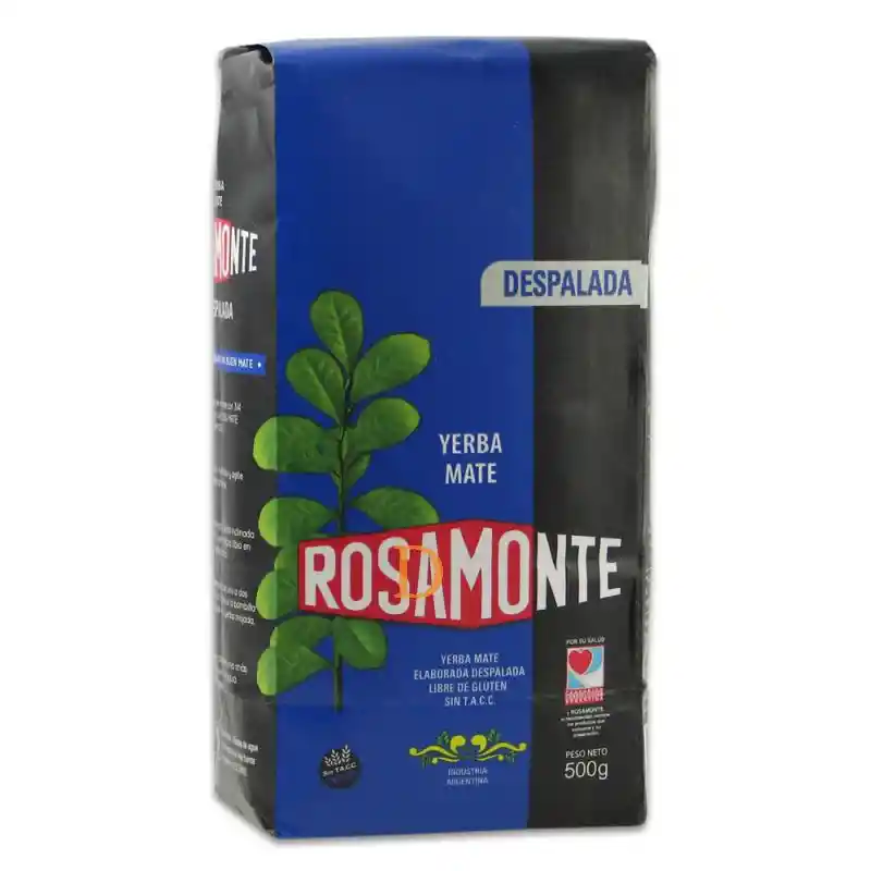 Yerba Mate Rosamonte Despalada 500 grs Estacionamiento natural, 12 a 18 meses. Libre de gluten. Presentación en 500 gramos. Su composición le proporciona un suave sabor. Bajo contenido de palo y bajo contenido de polvo. Predominan las hojas gruesas.