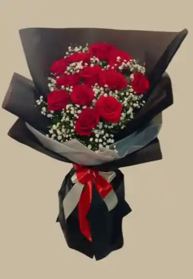 ramo de 12 rosas rojas, el papel podria variar segun stock