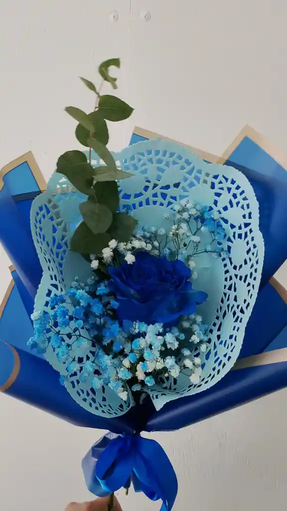 Rosas Azules Celebra el dá del Novio con un hermoso detalle Incluye: - 1 Rosa Azul tinturada - Nube tinturada -Papelería especial - Tarjetita de mensaje