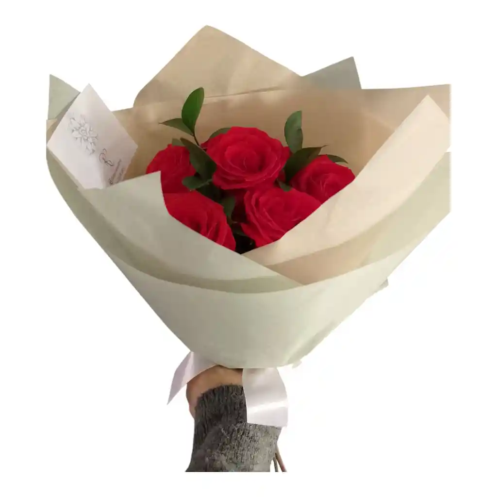 Ramo de 7 rosas rojas y ruscus. Incluye tarjeta.
