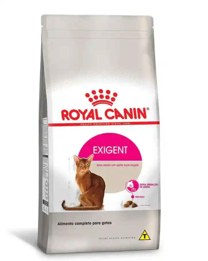 Alimento completo y equilibrado para gatos adultos (de más de 12 meses) con apetito caprichoso. Discernimiento por el sabor Formulado para gatos caprichosos a la hora de elegir el alimento y con preferencias particulares en cuanto a la textura de la croqueta. Exigent contiene 2 tipos de croquetas con distinta forma, textura y formulación. Mantenimiento del peso ideal Contenido energético balanceado para mantener a los gatos en su peso ideal. Ingredientes: harina de subproductos de pollo, arroz, maíz, grasa de pollo, gluten de trigo, proteína aislada de soya, salvado de gluten de maíz, cáscara de arveja, grasa de cerdo, pulpa de remolacha, aceite de soya, zeolita, fructooligosacáridos (FOS), colorante natural urucum, aceite de borraja, extracto de rosa de la India (rico en luteína), sales minerales, vitaminas, oligoelementos, levadura de cerveza, taurina, DL-metionina, hidrolizado de hígado de pollo. Análisis garantizado: Proteína (min): 31.0%, - Grasa (min): 14.0%,- Fibra cruda (max): 5.2%, -Humedad (max): 7.0%