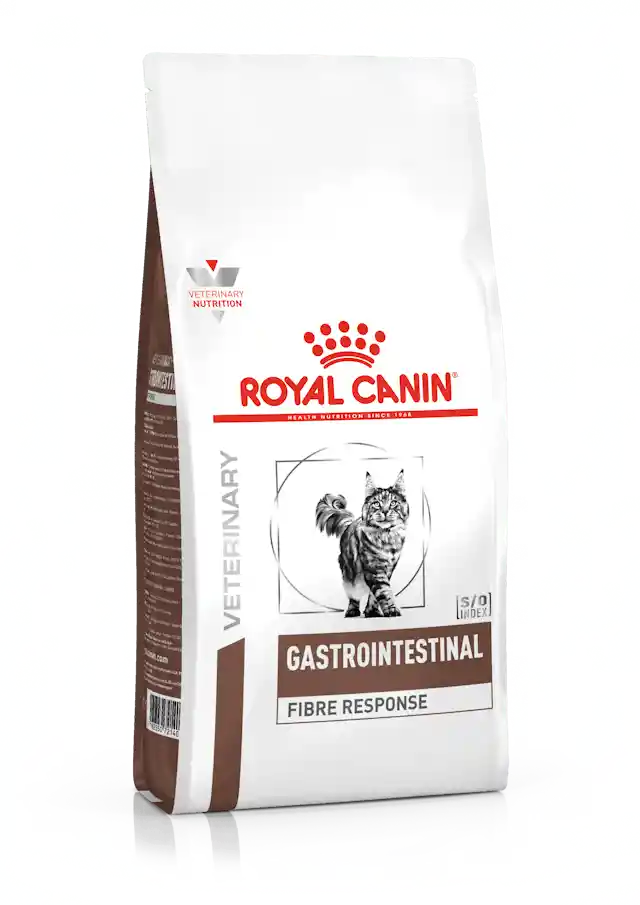 Royal Canin Gastrointestinal Fibre Response 2kg está formulado específicamente para ayudar a mantener la salud digestiva de tu gato en casos de estreñimiento crónico o de sensibilidad gastrointestinal parecida. Esta fórmula de alta digestibilidad está enriquecida con un contenido equilibrado de fibras solubles e insolubles, incluidos los prebióticos, para ayudar a mantener una digestión y un tránsito saludables. Este alimento está formulado específicamente con altos niveles de psyllium para ayudar al manejo de los efectos del estreñimiento y a regular un tránsito fácil. Este alimento está formulado para proporcionar unos niveles adecuados de energía para ayudar a tu gato a mantener un peso corporal saludable. Este alimento también contribuye a un entorno urinario desfavorable para el desarrollo de cálculos de estruvita y oxalato de calcio. Como parte de la gama ROYAL CANIN® Veterinary Health Nutrition , solo debes dar este producto a tu mascota si te lo recomienda un veterinario. La transición de tu mascota de una dieta a otra debe realizarse de forma lenta y gradual durante un período de 7 a 10 días. Debes asegurarte de ofrecer las raciones correctas. BENEFICIOS Soporte Digestivo es una fórmula altamente digestible con un aporte equilibrado de fibras, incluyendo prebióticos, para favorecer una digestión y un tránsito saludables. Tránsito Fácil es una fórmula específica (incluyendo niveles altos de psyllium) para ayudar a mantener un tránsito saludable. Energía Adecuada cuenta con niveles adecuados de energía para manteer un peso corporal saludable.