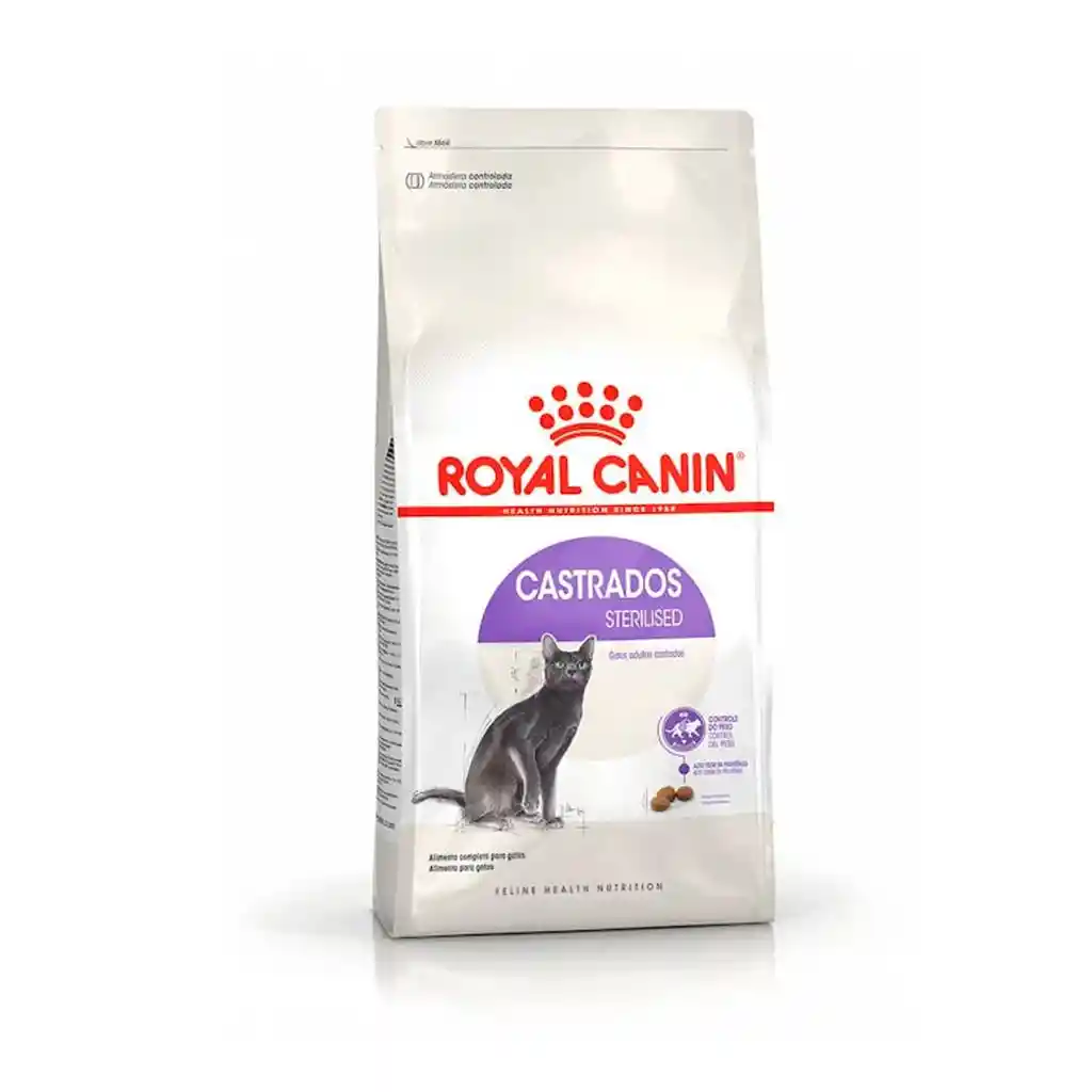 Royal Canin Gatos Castrados (Sterilised), Alimento completo y balanceado para gatos - Especialmente para gatos esterilizados (de 1 a 7 años). Sterilised ayuda a limitar el riesgo de aumento de peso excesivo gracias a un nivel moderado de grasa y raciones diarias adecuadas. Satisface el apetito caprichoso de los perros de razas pequeñas gracias a una fórmula especial y sabores exclusivos. Los gatos castrados/esterilizados tienen un mayor riesgo de desarrollar cálculos urinarios. Sterilised ayuda a mantener un sistema urinario saludable al proporcionar un equilibrio mineral adecuado. Sterilised ayuda a mantener la masa muscular gracias a un alto contenido de proteínas. Enriquecido con L-Carnitina, la cual ayuda en el metabolismo de las grasas. Formato: 1.5 kg