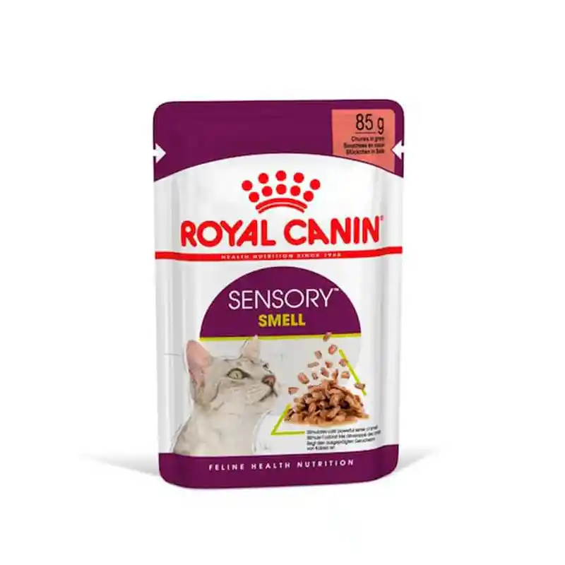Royal Canin Sensory Smell Gravy es un alimento húmedo indicado para gatos adultos que estimula el sentido del olfato del gato con su exquisito aroma. El alimento húmedo en salsa Sensory Smell de Royal Canin ha sido formulado con un atractivo perfil aromático para estimular el sentido del olfato del gato. El exquisito aroma sumado al delicioso sabor, mejorará el bienestar y abrirá el apetito incluso de los gatos más quisquillosos. Su alta concentración de nutrientes es preferida de forma instintiva por los gatos adultos, haciendo de este alimento húmedo un plato irresistible. También ayuda a mantener la salud del sistema urinario de tu gato. Pouch de 85 g.