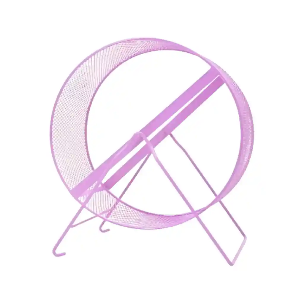Esta rueda es ideal para que tu mascota pequeña, ya sea hámster, erizo o cuy, disfrute de ejercicio seguro y cómodo. Fabricada con un diseño antideslizante, ofrece una superficie segura para correr sin riesgos de accidentes. Además, es silenciosa, asegurando que tu mascota pueda mantenerse activa sin generar ruidos molestos, especialmente en las noches. Medidas (15.5 x 10.5 x 15.5cm) Material: Metálica Color: Rosado
