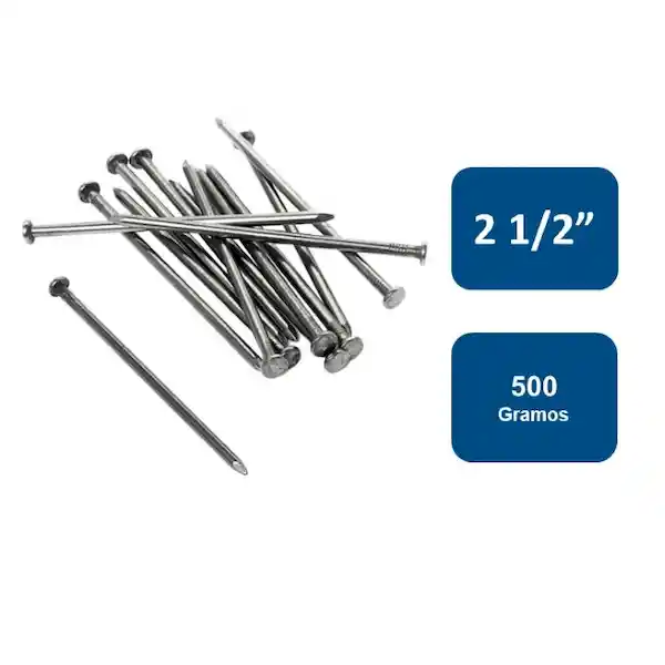 Caja Clavos Corriente 2. 1/2 500 g. Clavo Corriente Para Uso en Madera