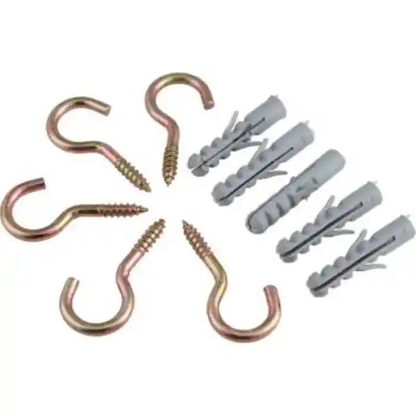 Incluye 5 Juegos. Cancamo Abierto y Tarugo Nylon Nº 5 / 6 mm. Primera Medida Indica el Tamaño Del Cáncamo. Segunda Medida Indica Tamaño Del Tarugo. Para Uso en Madera. Incluye Tarugo Para Uso en Concreto