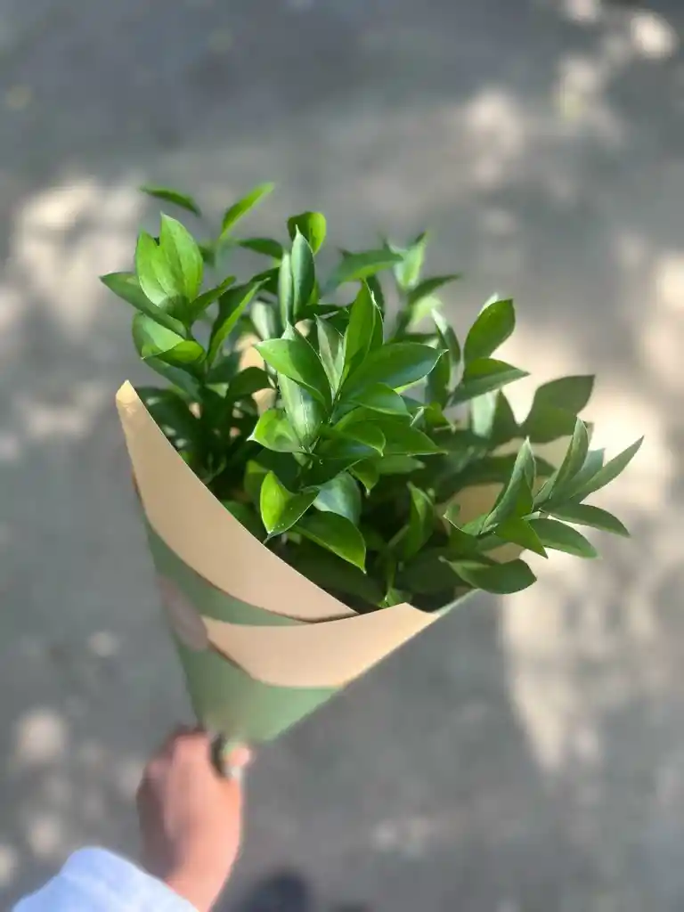 Incluye 10 varas de Ruscus fresco e importado envuelto en papel del día. Este follaje es ideal para complementar tus flores o para usarse por sí solo. Puede durar varias semanas si le cortas los tallos y cambias el agua cada dos días y los mantienes en un lugar fresco. Cualquier duda o consulta contactar nuestra tienda.