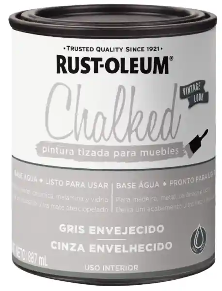 Pintura Chalked Tizada Base Agua 877 mL Gris Envejecido. Rust-Oleum Chalked Pintura Tizada Para Muebles es Una Pintura Muy Fácil de Usar Que Deja un Acabado Tizado Ultra Mate y Posee Una Excelente Adherencia y Cobertura.