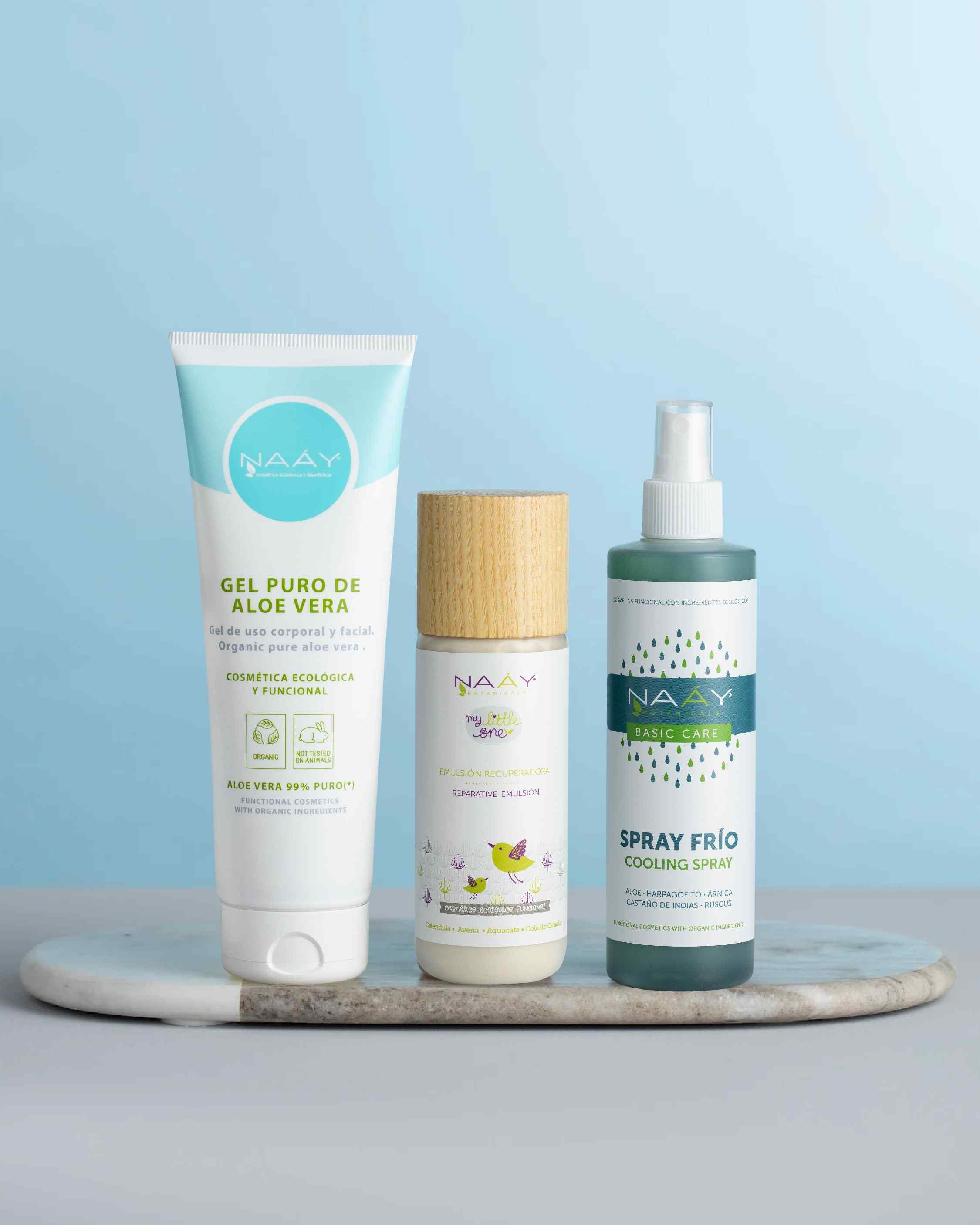¡Tu mamá se merece lo mejor y en NAAY lo sabemos! Por eso en su día, queremos que la regalonees con este pack que trae todo lo necesario para hacerla feliz. Calming spray frío + Gel de aloe vera + Emulsión recuperadora