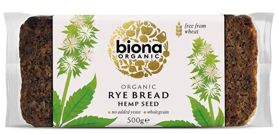 Pan de Centeno con semillas de cáñamo Biona 500g Este pan está hecho para Biona por una panadería familiar en Muensterland, Alemania. Establecida en 1927, la panadería utiliza habilidades artesanales tradicionales: moler los granos recién antes de hornearlos para crear panes llenos de la calidad integral necesaria como parte de una dieta saludable. Las semillas de cáñamo son ricas en proteínas y ricas en ácidos grasos esenciales. Ingredientes: Harina integral de centeno *, agua, masa madre natural * ( harina integral de centeno *, agua), semillas de cáñamo * (6%), sal marina. *Ingredientes orgánicos certificados Alérgenos: Contiene gluten. Sin trigo. Vegano. Integral. Sin lactosa. Sin agregado de caña o de remolacha. Conservación: Una vez abierto, guárdelo en un recipiente hermético y consuma dentro de 2 o 3 días. Para garantizar una vida útil máxima, le recomendamos que también refrigere el pan. Información nutricional por 100g: Valor energético 186 kcal / 785 kJ Grasas 1.2 g de las cuales saturadas 0.3 g Hidratos de carbono 34.6 g de los cuales azúcares 3.7 g Fibra: 10.1 g Proteínas 4.2 g Sal 1,13 g