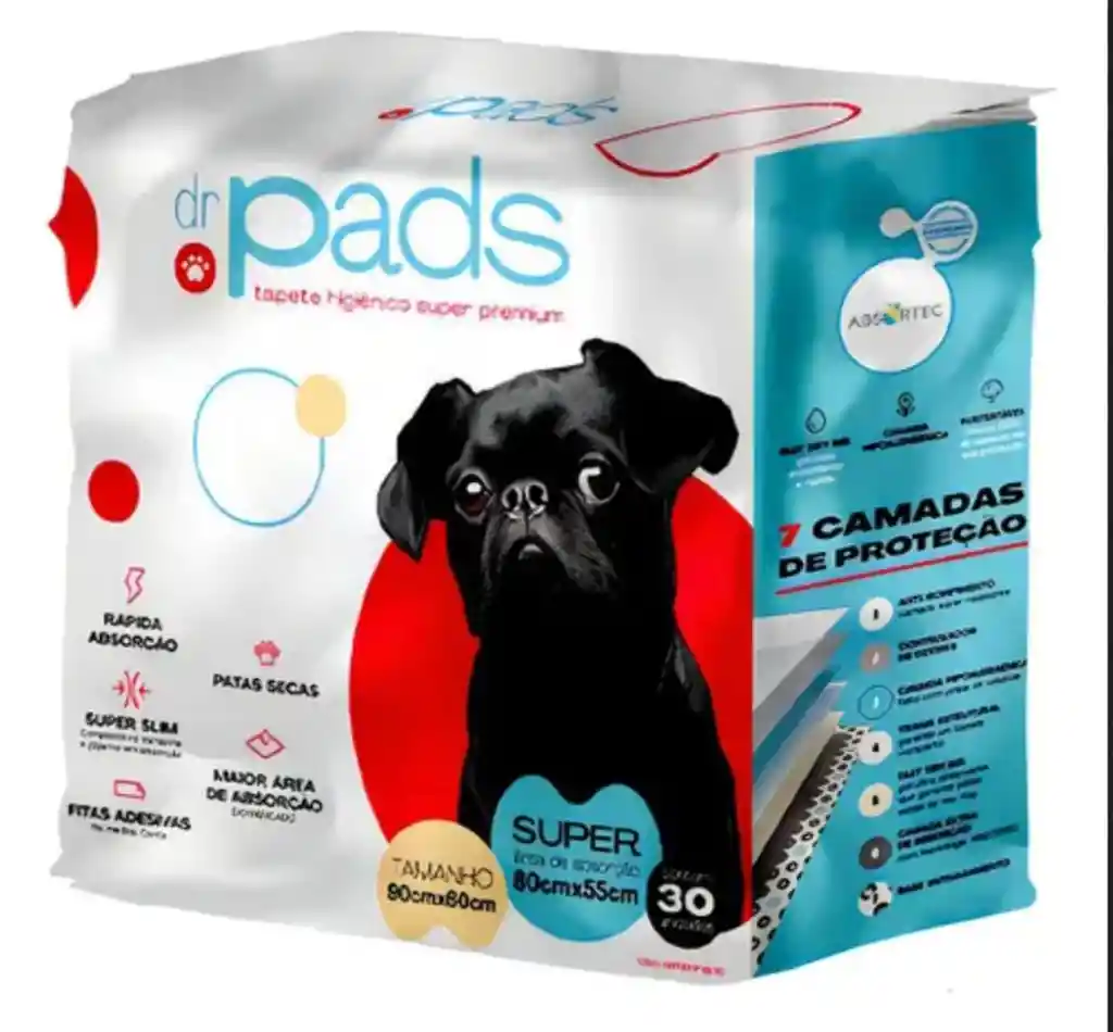 El tapete de higiene para perros Dr Pads es un tapete súper absorbente de alta calidad diseñado para ayudar en la higiene del perro, tiene una capa superior suave que absorbe rápidamente los líquidos y tiene una base impermeable para evitar fugas. Tiene un neutralizador de olores desagradables, tiene tecnología antidesgarro y es un producto antibacterial. Tiene una barrera antifugas y es súper fácil de fijar al suelo o a la pared. Medidas aproximadas: 60x60cm Composición: Celulosa, Papel, Polietileno, Polipropileno, Adhesivo Termoplástico, Atrayente, Cinta Bilaminada, Polímeros Superabsorbentes.