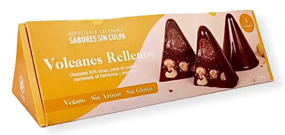 Sabores sin culpa Volcanes Chocolate 55% Cacao Rellenos (Vegano. Sin Gluten. Sin Azúcar)