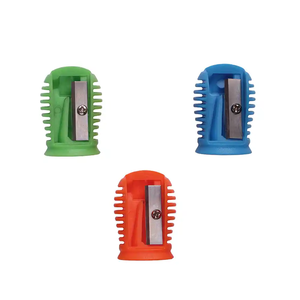 Sacapuntas. ¡Saca punta a tus lápices y crea sin límites! Material plástico. Medidas: 3,8 x 2,1 x 1,7 cm. aprox. Empaque: 3 unidades. De excelente calidad y original diseño. Apto para lápices delgados de hasta 0,7 cm. Colores surtidos: Azul, verde y naranjo. Marca: ADIX.