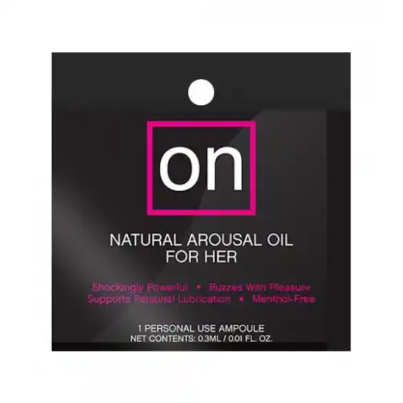 On Aceite natural excitante para ella, es el indicado para quienes quieren llegar a orgasmos único e inolvidables, su mezcla de aceites esenciales llevan a crear sensaciones de excitación natural y un aumento de lubricación perfecta para la mujer. Características: Formato Pipeta Personal Contenido: 0,5 ml Libre de Mentol Excitante de uso externo. Ingredientes: Proprietary Essential Oil, Sweet Almond Oil, Cinnamomun Zeylanicum, Natural Tocopherols (vitamin e ) silica, natural flavors, Rosemary oil extract. Modo de uso: Aplicar de 1 a 2 gotas en el clítoris , luego de 2 minutos aproximados comienza su efecto, con una duración aproximada de 45 minutos. Repita si es necesario. No apto para embarazadas, ni en periodo de lactancia. Hecho en EE.UU. IMPORTANTE Los resultados dependerán del uso correcto del producto y del organismo de cada persona. Antes de usar un producto de cosmética erótica se recomienda revisar los componentes de éste para evitar reacciones alérgicas.