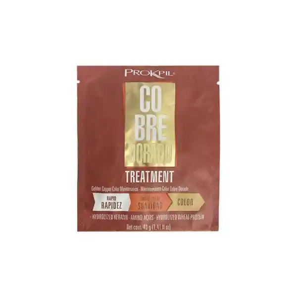 Matizador color cobre para mantener y dar un color más intenso color cobrizo Nuestro Tratamiento conservará el Color de tu cabello tinturado por más tiempo, además dejándolo hidratado, sedoso y brillante. Sus activos funcionales te encantarán, la proteína de Trigo que este posee penetra profundamente en el cabello creando una capa protectora, la Keratina hidrolizada le aporta fuerza y protección, mientras que la mezcla de Aminoácidos actúa en tu fibra capilar estimulando la hidratación, fortaleciendo su estructura y reparando los daños. Modo de uso: Lava tu cabello con Nuestro Shampoo Color Care, Elimina el exceso de agua con una toalla, Aplica suficiente cantidad de Tratamiento color en tu cabello, por mechones gruesos, Separa tu cabello por mechones y aplica la cantidad suficiente de tratamiento color en forma de ordeño, Deja actuar el tratamiento color de 5 y 10 minutos dependiendo del color de tu cabello y la intensidad deseada y Retira con suficiente agua y disfruta de colores más vivos en tu cabello. Producto prokpil