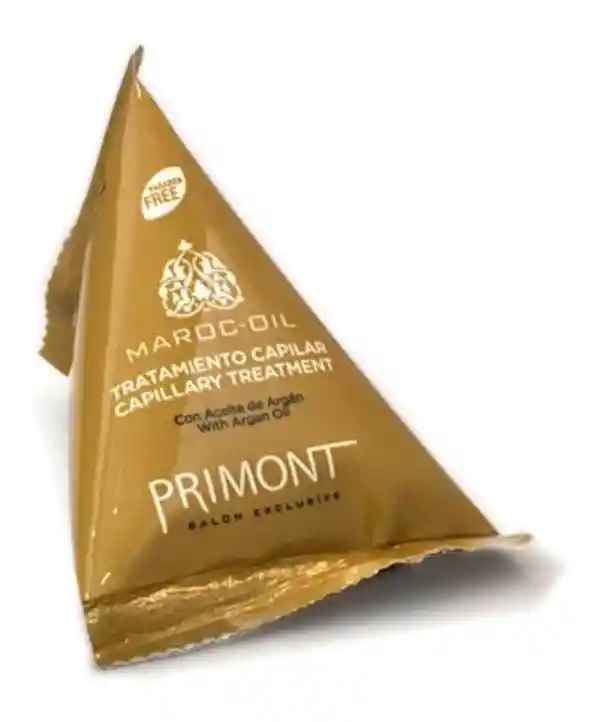 El tratamiento Primont Maroc Oil revive el cabello, ayuda a cerrar las puntas y reduce la rotura de la fibra. Fue desarrollado con aceite puro de argan. Este complejo fortalece el cabello, lo nutre y revitaliza. Además aporta brillo y suavidad natural. Es rico en -Vitamina E- cuya función es antioxidante, hidratante y es un excelente Anti-Age. Anti-Break de la Fibra Capilar. Aporta fuerza al cabello. Nutre y revitaliza el cuero cabelludo. Aporta brillo y suavidad natural a la fibra. Neutraliza los radicales libres y protege contra las agresiones externas. Recomendado para cabellos gruesos y deshidratados. Contenido 20 Gr Producto Primont
