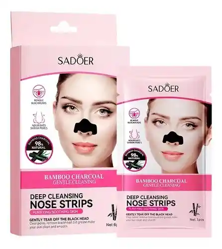 Bandas nasales con carbón de bambú diseñadas para limpiar profundamente los poros y eliminar puntos negros, exceso de grasa e impurezas, dejando la piel más limpia, suave y fresca. Ayudan a mejorar la apariencia de los poros y purificar la zona de la nariz. Contiene 6 unidad. Producto original marca Sadoer. Uso externo.
