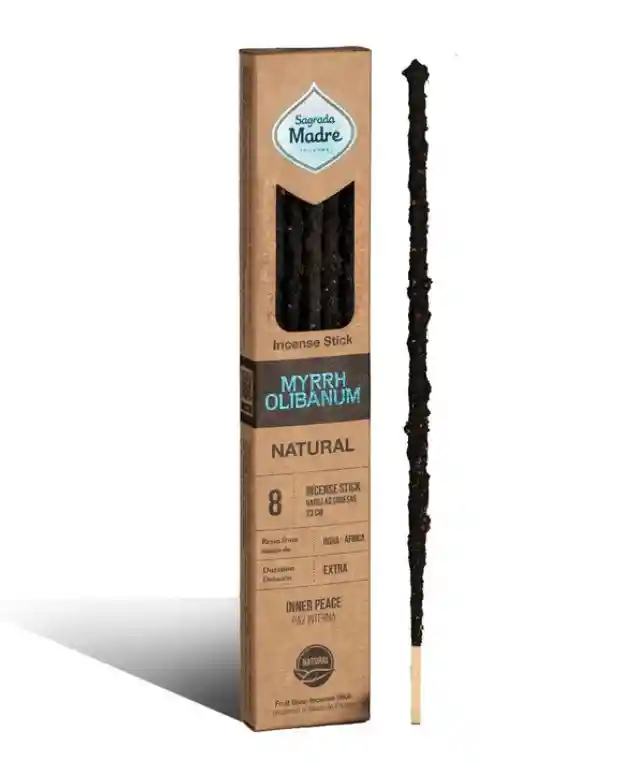 Palo Santo Árbol Sagrado que crece en los bosques secos de América del sur, utilizada hace mas de 2000 años para purificar y armonizar Rituales Sagrados. Mirra e Incienso: esta mezcla sublime nos invita a alcanzar la serenidad y la claridad, para crear espacios de paz interior y elevar nuestra energía hacia un estado trascendental. Entregando Fuerza Interior para lograr nuestros objetivos. Contenido Neto: 8 varillas gruesas duración extra Premium. Duración aproximada 1 hrs por varilla. Composición: Carbón natural, Resina de Mirra (Mediterráneo), aglutinante natural.