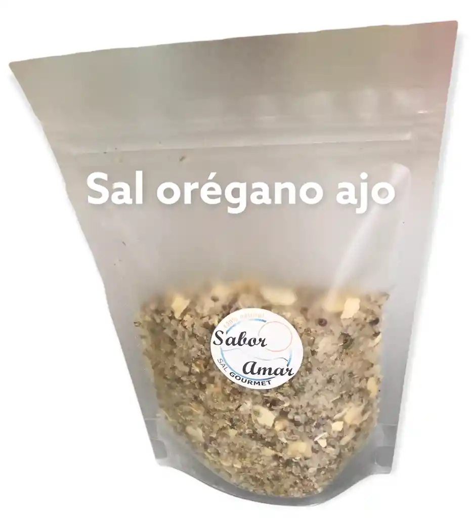 Bolsa recarga Sal de mar mezclada con orégano y ajo, Ideal para molinillos